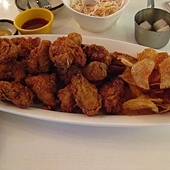 另外個人覺得很"假會"吃炸雞用的餐具是夾子和叉子???本人走豪邁路線