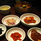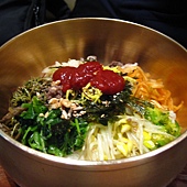 新世界百貨公司樓上的美食街應該是專賣全州拌飯和小菜,全州拌飯(黃銅碗?)